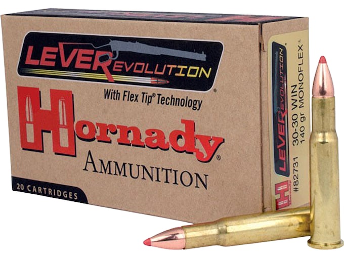 LEVERevolution ammunition features up to 40% more energy than traditional flat point loads and travels up to 250 fps faster. Feed your lever gun with a box today! This ammunition is new production, non-corrosive, in boxer primed, reloadable brass cases.