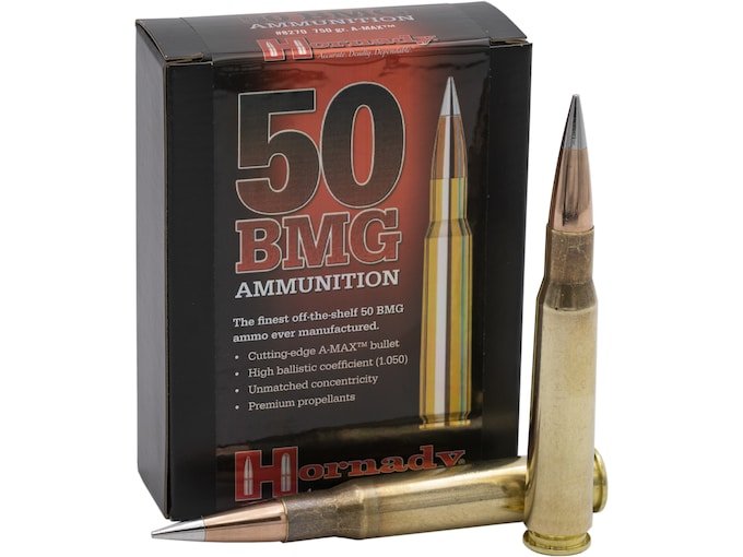 Hornady has taken the technology of the A-Max bullet and turned it into a 50 caliber Match cartridge. With a muzzle energy of over 13,000 ft. lbs., this loaded round creates destructive potential but keeps it accurate and consistent at the same time.