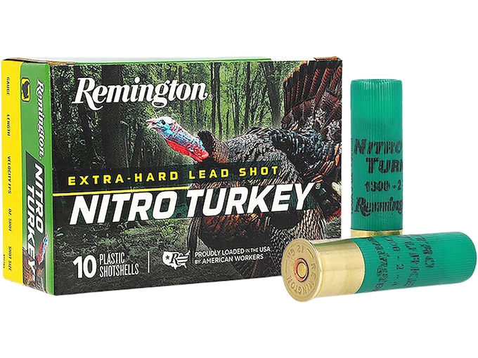 Remington Nitro Turkey loads use exclusive Nitro Mag extra hard lead shot that delivers the same high performance of copper plated shot at an incredible price. Loaded using a special blend of powders and the famous Remington Power Piston one-piece wad. Nitro Turkey Magnums pattern as well as copper plated and buffered loads available. In fact, 80% patterns are common with the use of super full chokes.